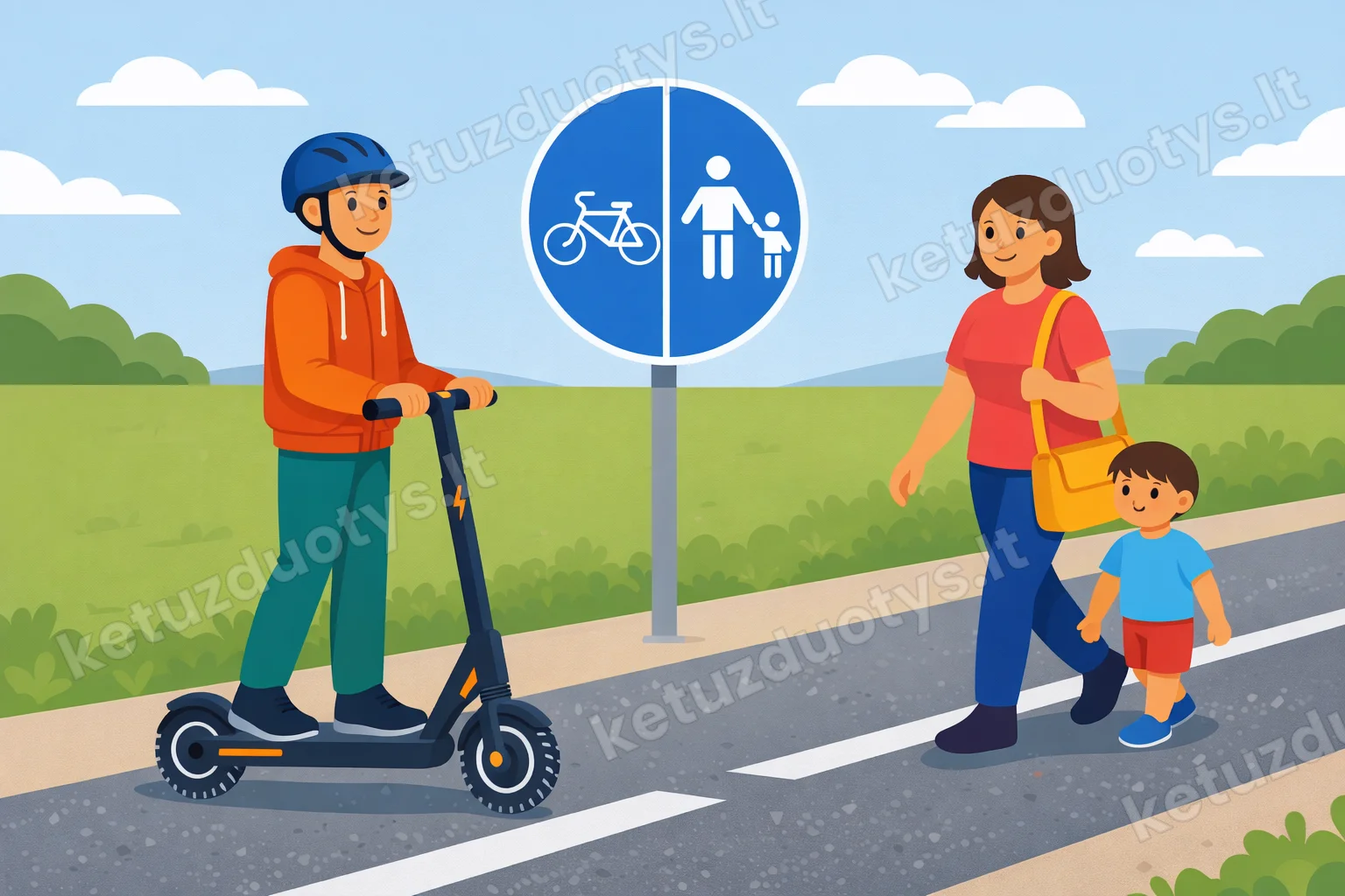 Važiuojant pėsčiųjų ir dviračių taku, kelkraščiu arba šaligatviu pro pat pėsčiąjį, elektrinės mikrojudumo priemonės greitis negali būti didesnis kaip 7 km/h.