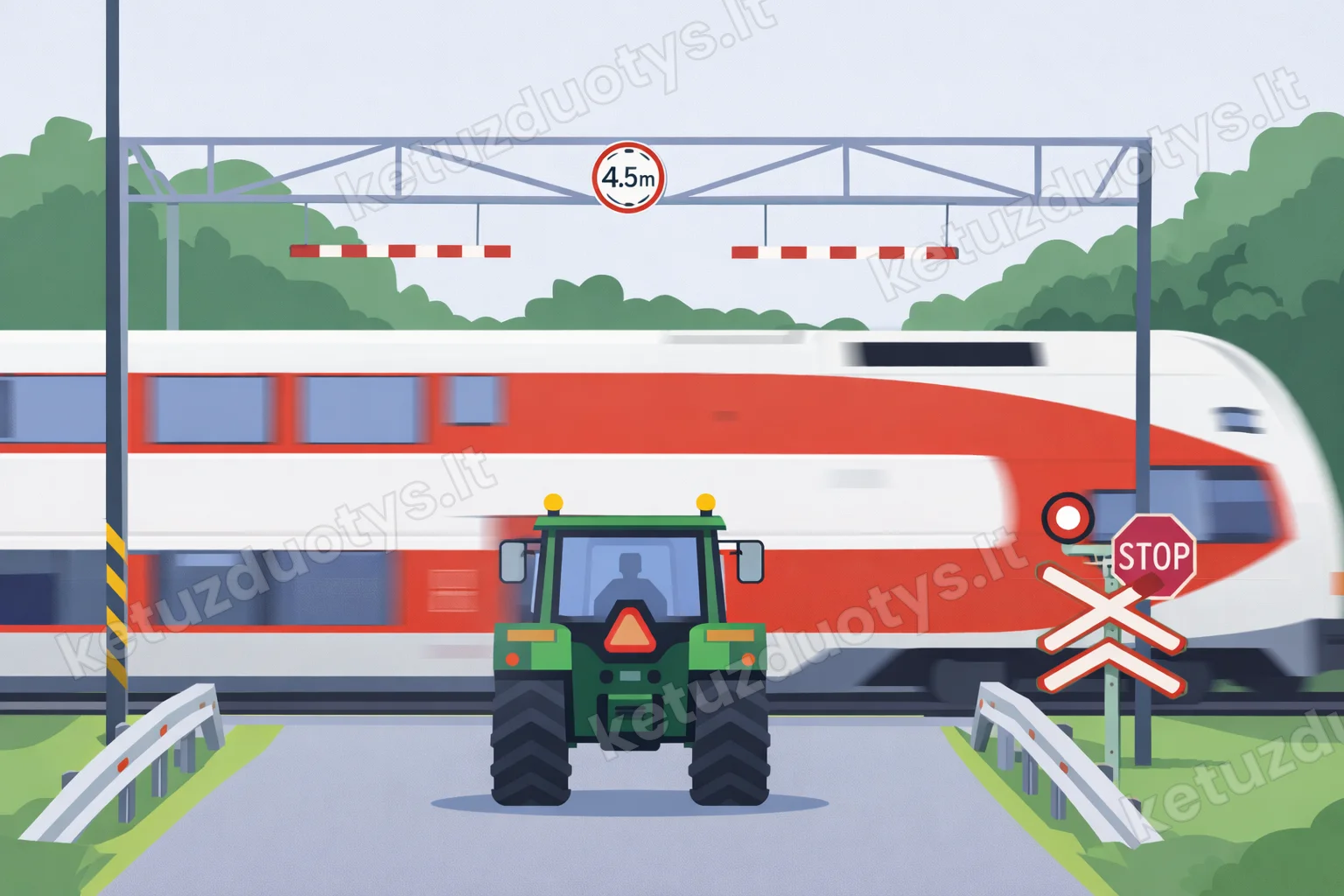 Ar lėtaeigei mašinai, kurios greitis mažesnis kaip 8 km/h, leidžiama važiuoti per geležinkelio pervažą?
