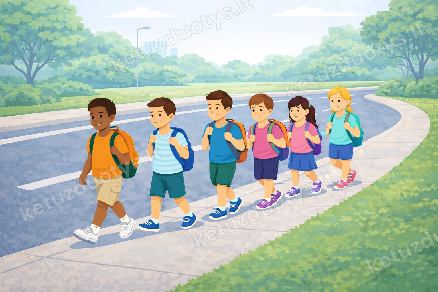 Organizuota pėsčiųjų grupė, kurią sudaro vaikai iki 16 metų, vedama kelkraščiu. Kiek mažiausiai lydinčių asmenų privalo būti?