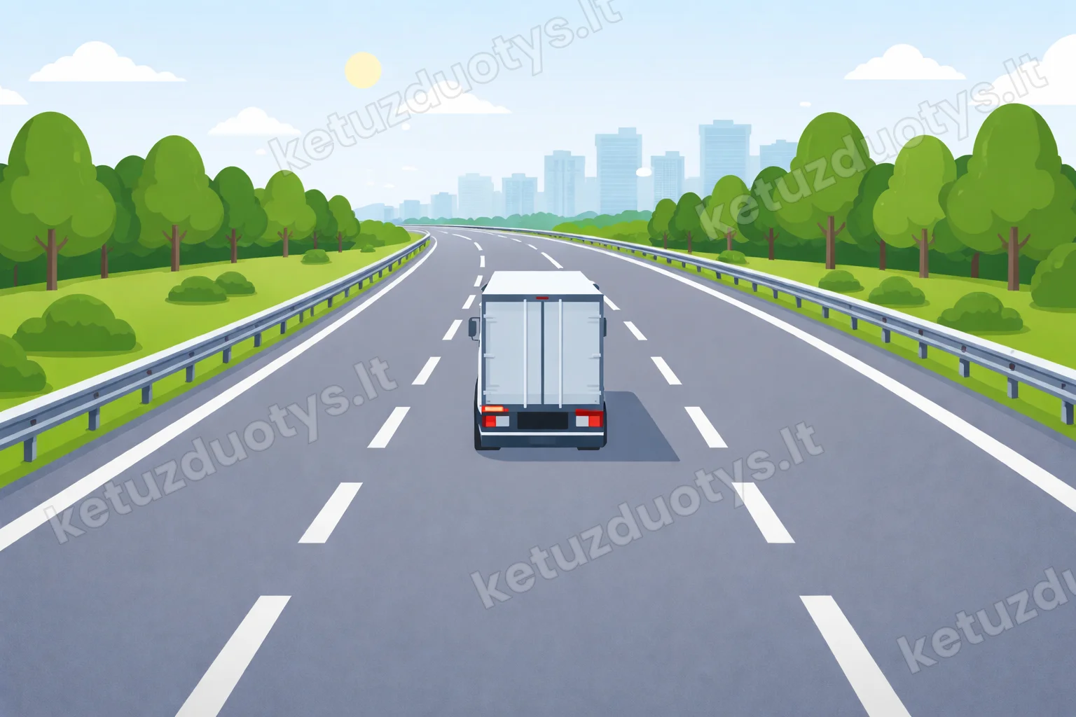 Krovininis automobilis, kurio didžiausioji leidžiamoji masė didesnė kaip 3,5 t, važiuoja keliu su trimis eismo juostomis viena kryptimi. Kuriomis juostomis jam leidžiama važiuoti?