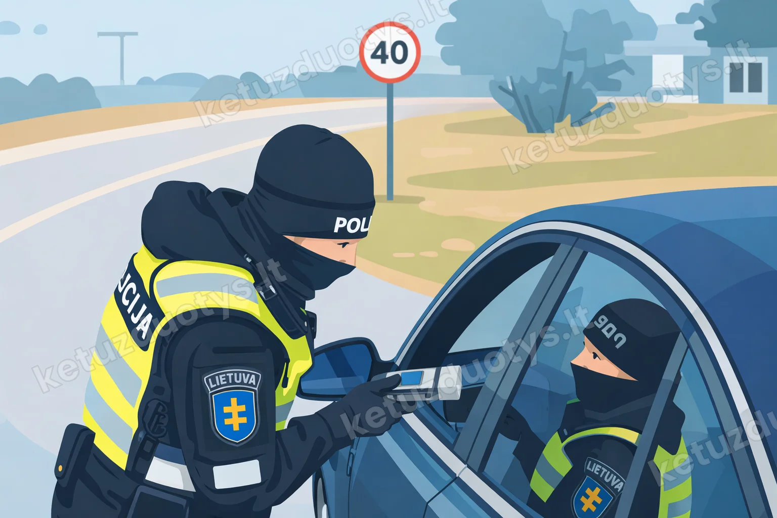 Ką privalo daryti vairuotojas, jei tikrinantis pareigūnas duoda signalą sustoti mojuodamas lazdele?