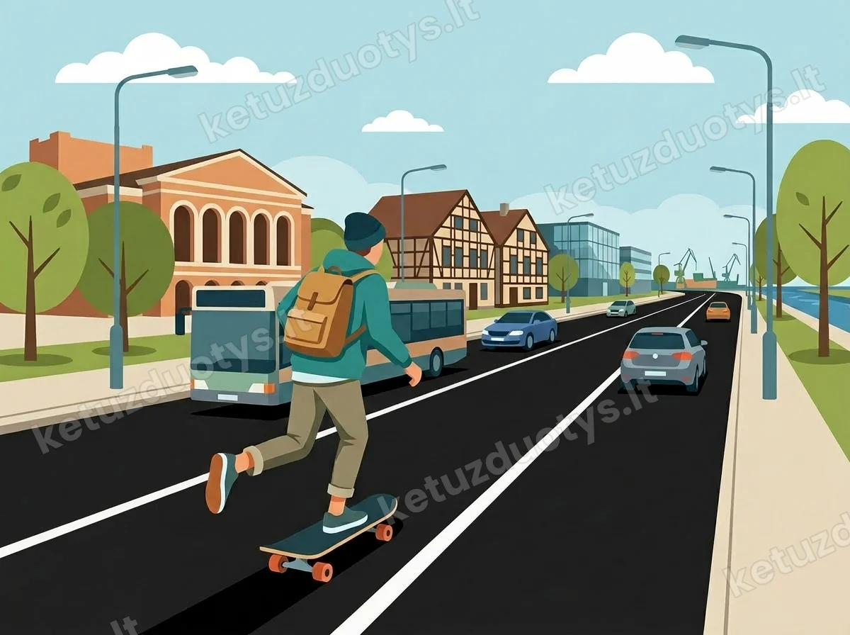 Kur draudžiama važiuoti riedučiais, riedlentėmis ar paspirtukais be variklio?