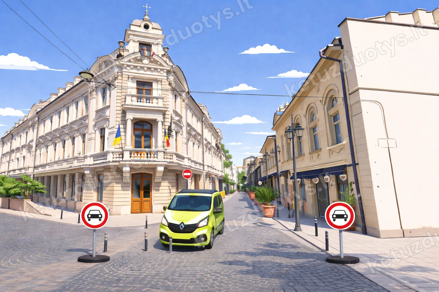 Transporto priemonės, atvežančios krovinius į draudžiamais ženklais pažymėtą zoną.