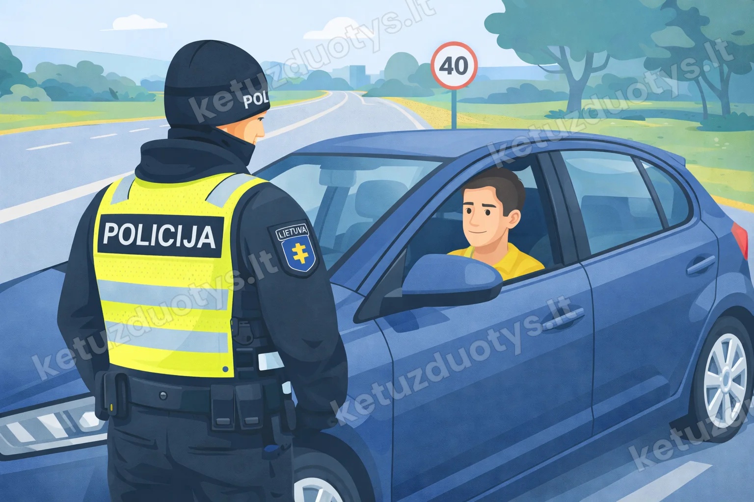 Ką privalo padaryti transporto priemonės vairuotojas, kurį sustabdė tikrinantis pareigūnas?
