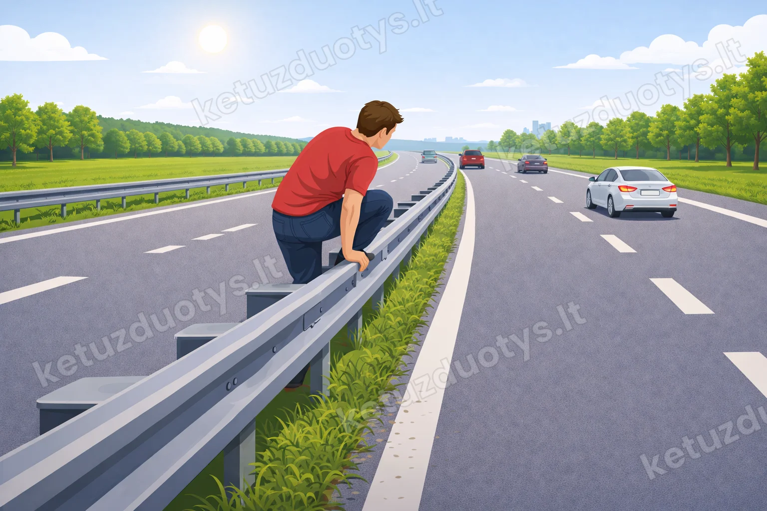 Tose vietose, kur yra transporto ar pėsčiųjų atitvarai.