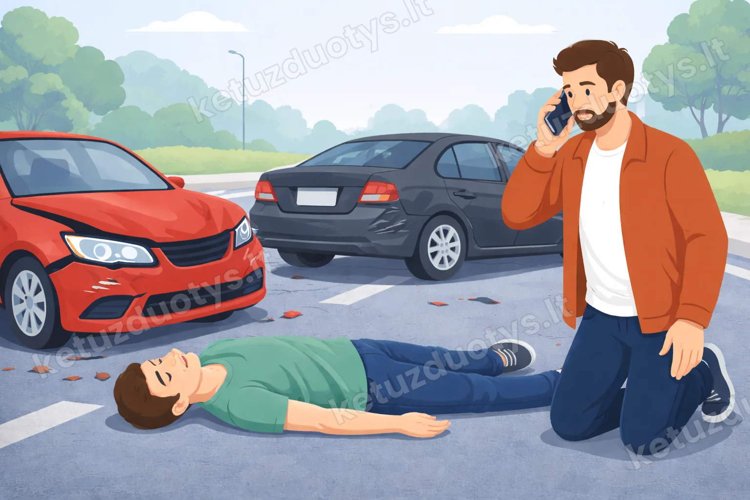 Jei eismo įvykio metu yra sužeistų žmonių, ką privalo daryti eismo dalyviai?