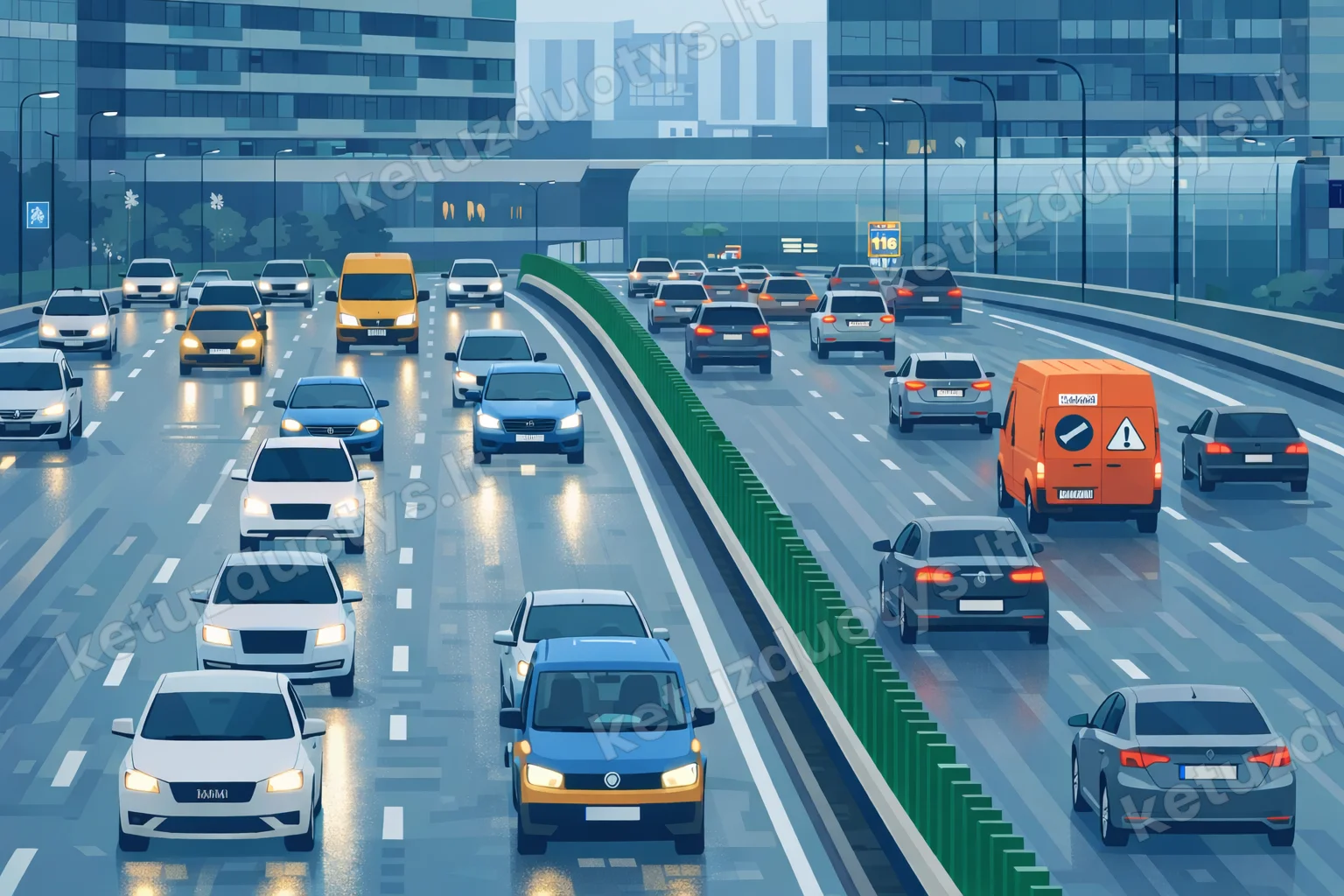Visada, kai važiuojama lėčiau nei 40 km/h automagistralėje.