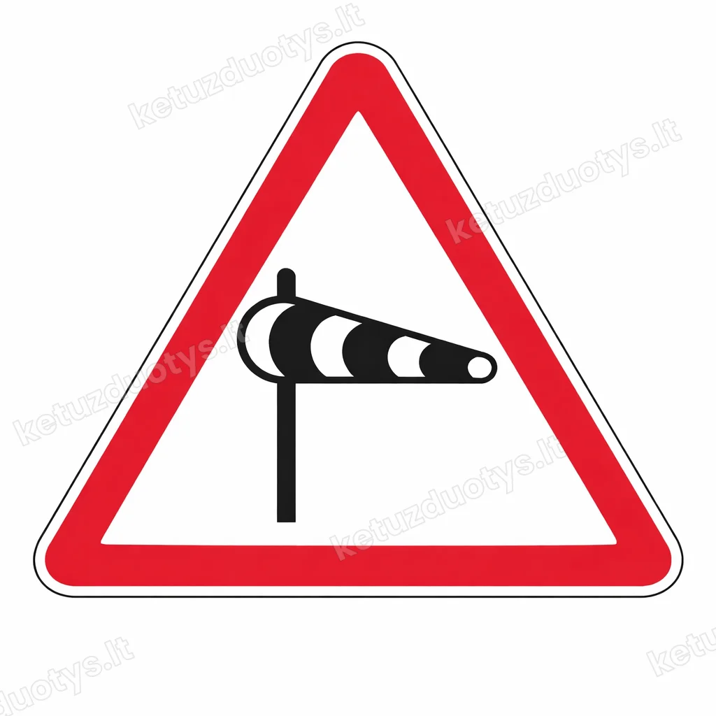 Tai įspėjamasis kelio ženklas Nr. 133 „Šoninis vėjas“. Jis statomas atvirose vietose, pavyzdžiui, ant tiltų, viadukų, kur staigūs ir stiprūs šoninio vėjo gūsiai gali paveikti transporto priemonės stabilumą. Vairuotojas turi būti pasirengęs koreguoti važiavimo trajektoriją.