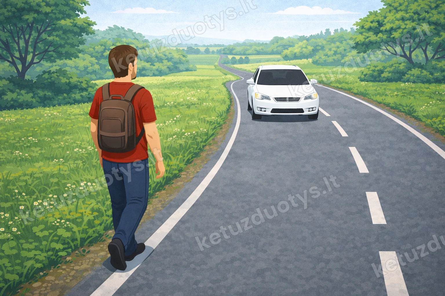 Kur pėsčiasis privalo eiti, jei kelyje nėra nei šaligatvio, nei pėsčiųjų tako, nei kelkraščio?