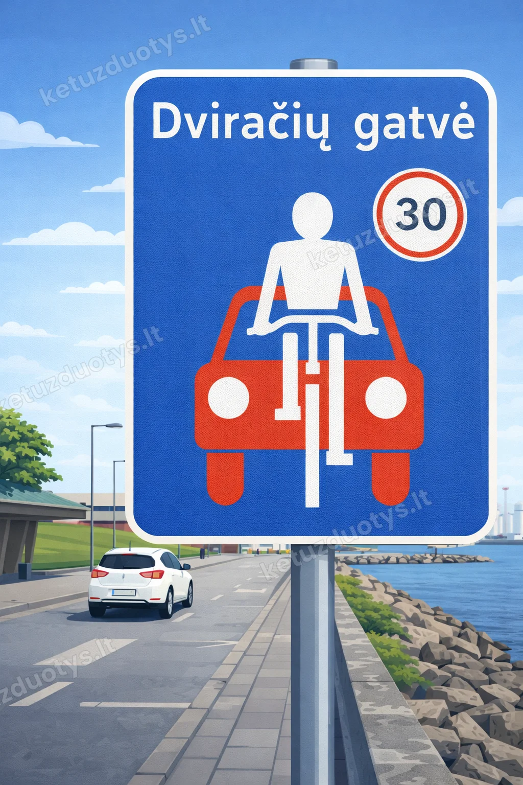 Kuris iš šių veiksmų yra draudžiamas dviračių gatvėje?