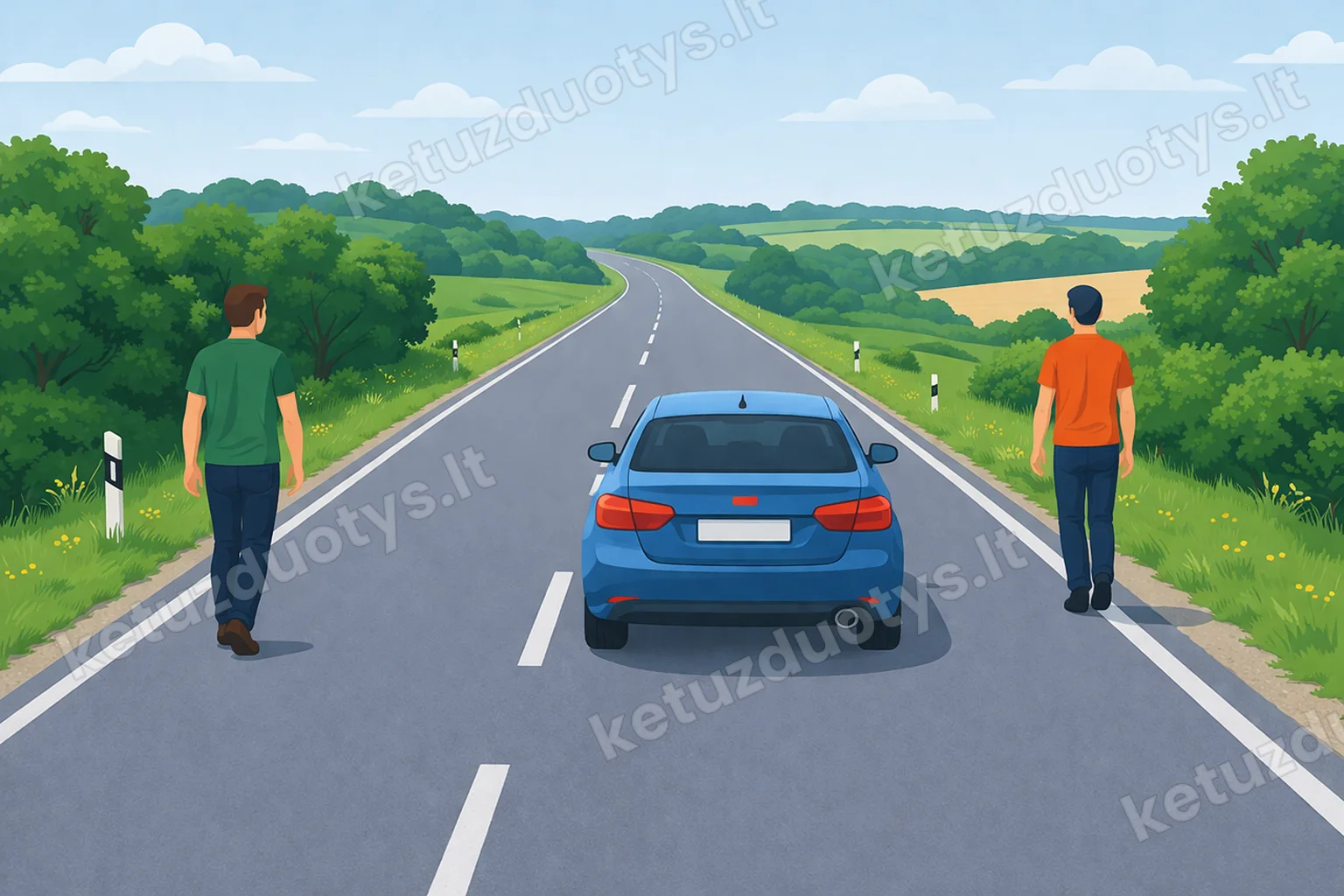 Ką privalo daryti pėstieji, judantys kelkraščiu arba važiuojamosios dalies pakraščiu?